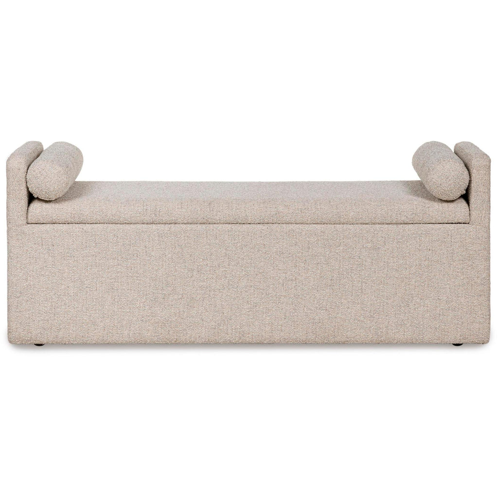This upholstered dining bench brings a rustic vibe to urban contemporary design. It's a modern approach to everyday function, with storage hidden under the seat. And the bench's neutral color is stunningly simple, allowing it to coordinate seamlessly with your existing decor.