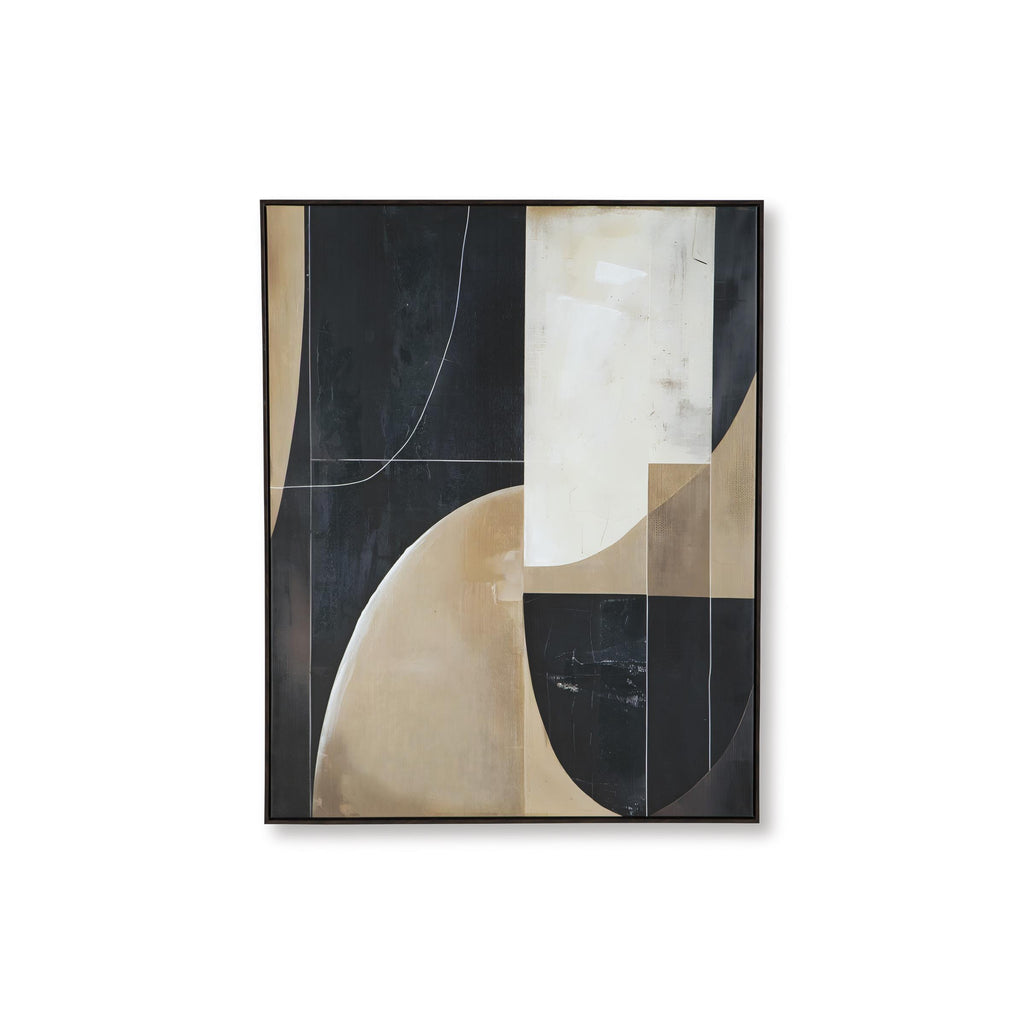 Geometric forms are layered to create the dynamic character of this wall art. Abstract in shades of black, brown and tan, it’s a statement piece well-suited to a contemporary living room or office. Change its styling as you please—this artwork can hang four ways.