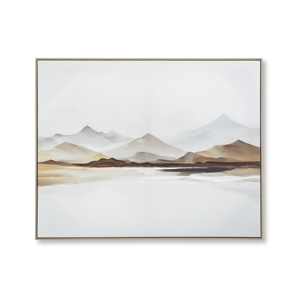 Bring the majesty of the mountains indoors with this landscape. An open expanse in the foreground contrasts and draws the eye to the rolling hills. The wall art takes a minimalistic approach to natural beauty, with neutral tones that make an impact in contemporary spaces.