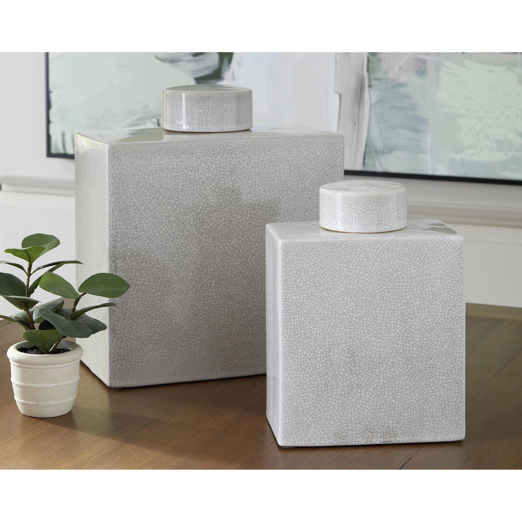 Crafted with an off-white crackle effect, this ceramic jar has a classic, antiqued feel well-fitted to new traditional spaces. Whether it's adding a finishing touch to your dining room or den, the accent piece brings dimensionality to your decor.