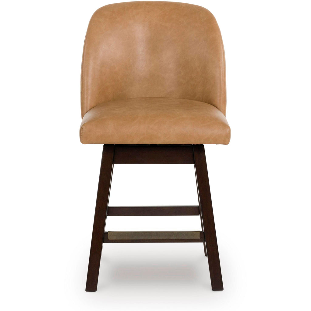 This counter height swivel bar stool is the perfect blend of casual and contemporary styles. Its sleek light brown faux leather pairs with a dark grayish brown finish to keep the look right on trend. Expertly balancing high style and versatility, it brings both flair and function to dining.