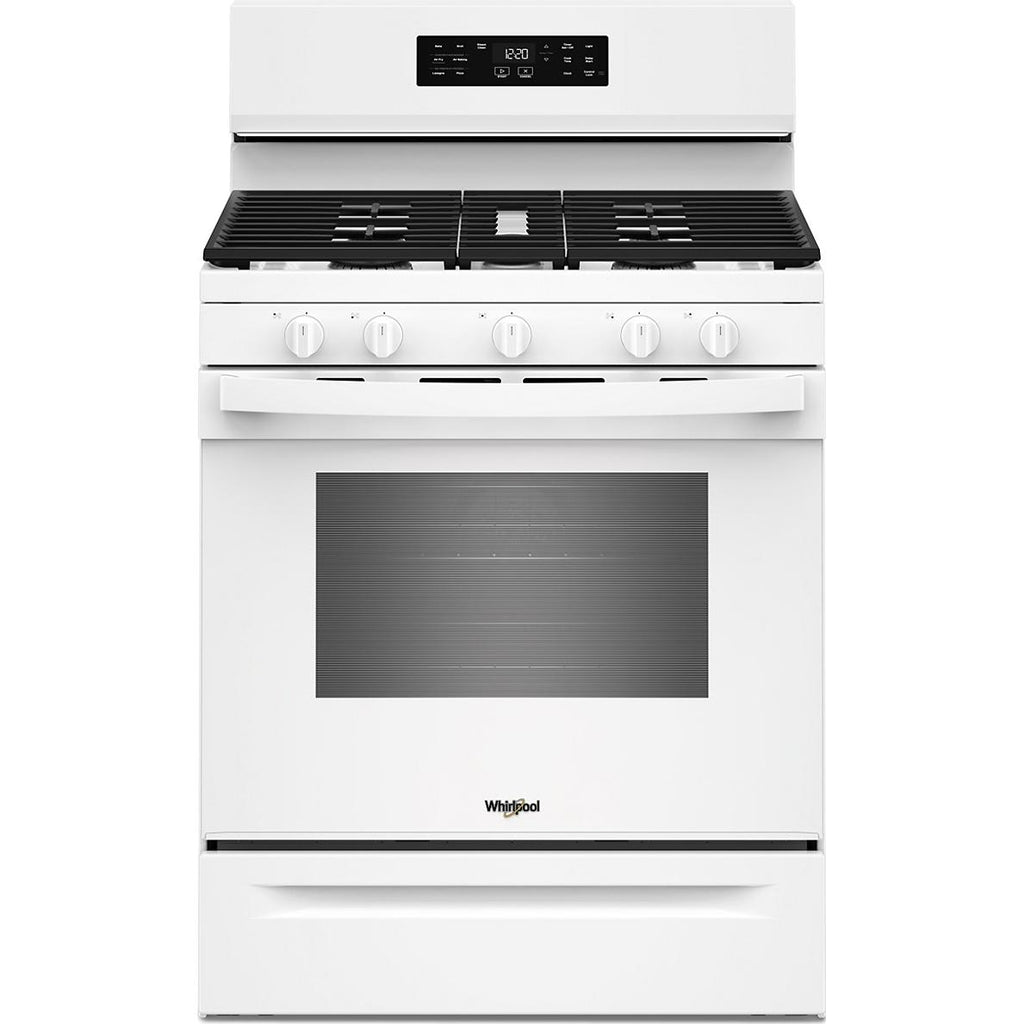 Whirlpool 30-inch Gas Range with Air Cooking Technology and Steam Clean. Experience the difference of Air Cooking Technology with Air Baking with this 30-inch gas range. Get crispy fast with No Preheat Air Fry or make more feel good meals with a variety of cooking modes. Maximize your cooking space with an 8000 BTU Griddle Zone and prevent soils from building up by regularly using Steam Clean.