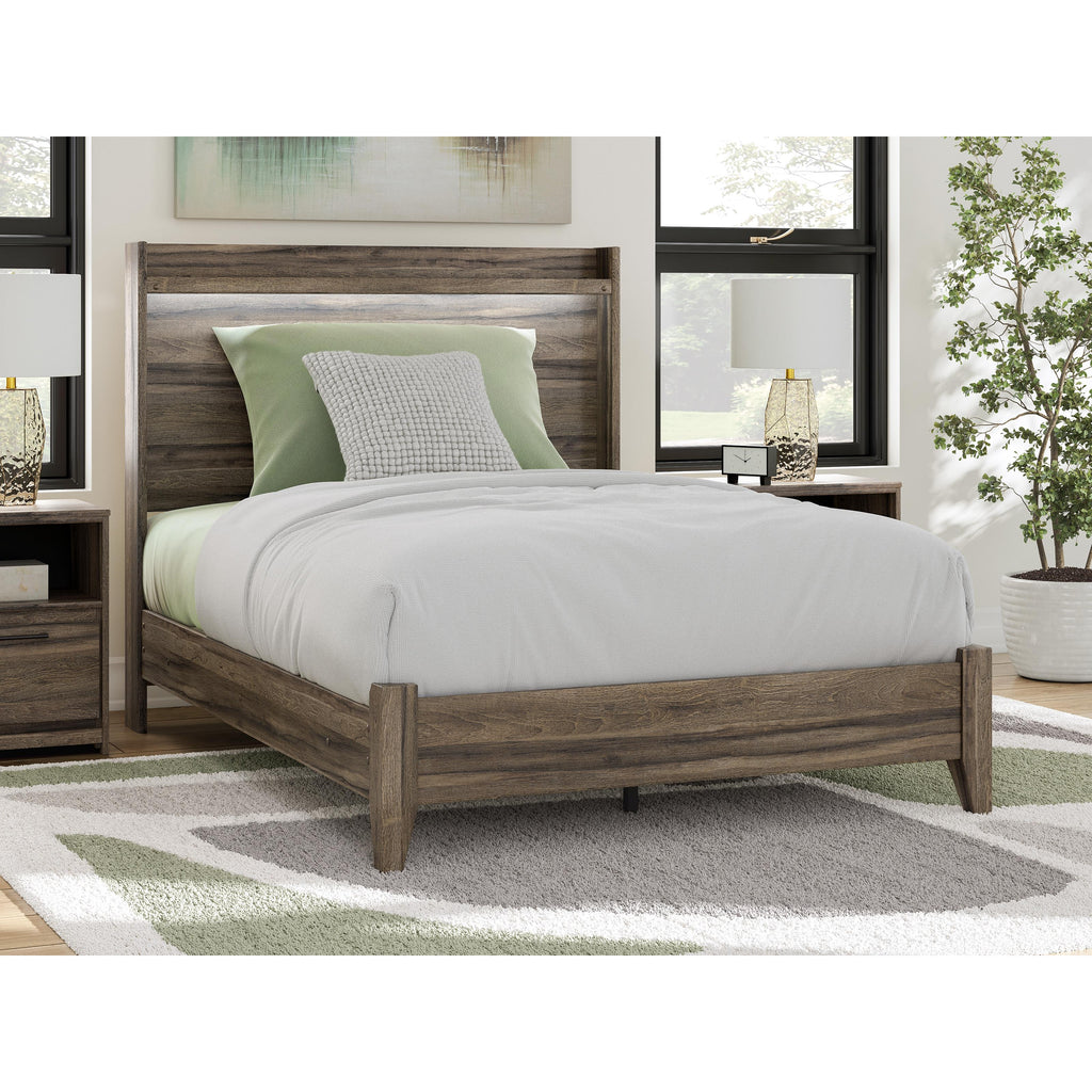 Reposez-vous dans le style décontracté et frais de ce lit à panneaux complets. Une finition brune vieillie et un éclairage DEL froid créent une ambiance décontractée, créant l’ambiance de votre retraite reposante. Le design épuré du lit offre un look sans tracas.